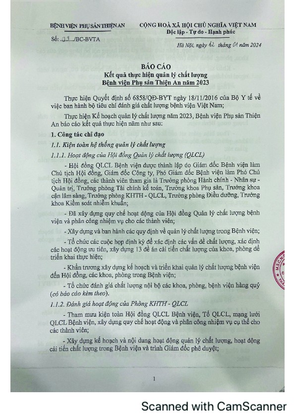 Tin tức Tin nổi bật Tin nội bộ Truyền thông Sức khỏe sinh sản Những câu chuyện thành công Trang chủ » Tin tức » BÁO CÁO QUẢN LÝ CHẤT LƯỢNG NĂM 2023 BÁO CÁO QUẢN LÝ CHẤT LƯỢNG NĂM 2023 Đội ngũ chuyên gia AHLĐ. NGND. GS. TS. BS NGUYỄN VIẾT TIẾN Giám đốc Bệnh viện PGS. TS. BSCK II CUNG THỊ THU THỦY Bác sĩ chuyên khoa Phụ Sản TTND. ThS. BSCK II LÊ THỊ THANH THÚY Phó Giám đốc Bệnh viện BSCK II. NGUYỄN THỊ HỒNG MINH Bác sĩ Khoa Khám bệnh TS. BSCK II. BÙI ÍCH KIM Trưởng khoa Gây Mê Hồi Sức Bài viết liên quan IVF THIỆN AN ƯU ĐÃI ĐẶC BIỆT – TỐI ƯU CHI PHÍ ĐIỀU TRỊ IVF (01/11 – 30/11/2025) THỤ TINH TRONG ỐNG NGHIỆM (IVF) – HÀNH TRÌNH ƯƠM MẦM HẠNH PHÚC TẠI IVF THIỆN AN [VOV2] Niềm hạnh phúc từ những thành tựu của ngành sản phụ khoa Danh sách người thực hành hoàn thành thời gian thực hành khám bệnh, chữa bệnh trong Quý II năm 2025 Tin nổi bật Xem tất cả IVF THIỆN AN ƯU ĐÃI ĐẶC BIỆT – TỐI ƯU CHI PHÍ ĐIỀU TRỊ IVF (01/11 – 30/11/2025) THỤ TINH TRONG ỐNG NGHIỆM (IVF) – HÀNH TRÌNH ƯƠM MẦM HẠNH PHÚC TẠI IVF THIỆN AN [VOV2] Niềm hạnh phúc từ những thành tựu của ngành sản phụ khoa Danh sách người thực hành hoàn thành thời gian thực hành khám bệnh, chữa bệnh trong Quý II năm 2025
