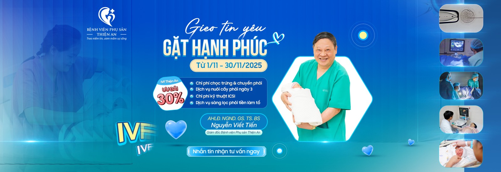 Đây là cơ hội vàng để các cặp đôi chủ động bước vào hành trình IVF với chi phí được tối ưu tối đa, nhưng vẫn đảm bảo chất lượng chuyên môn, công nghệ tiên tiến và sự đồng hành tận tâm từ đội ngũ bác sĩ giàu kinh nghiệm của IVF Thiện An.