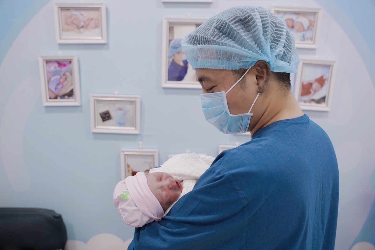 Gia đình hạnh phúc đón bé chào đời