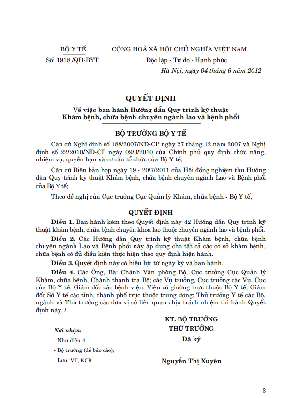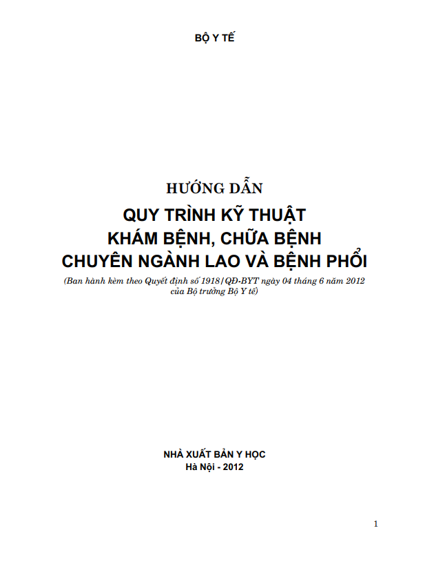 Quy trình Kỹ thuật khám bệnh, chữa bệnh Chuyên ngành Lao và Bệnh phổi
